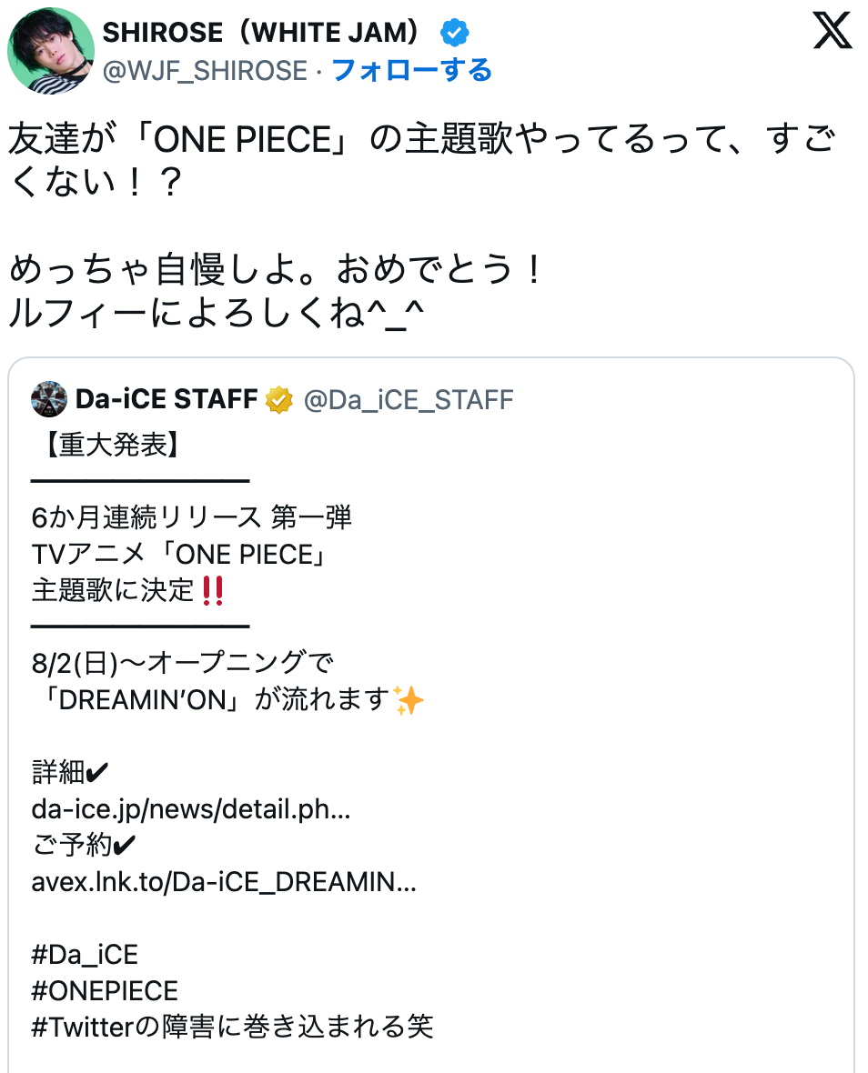 但他也不是只会搞噱头,还是有点才华的,跟日本顶流岚、SNOW MAN等艺人都有过合作,包括海贼王和之国篇的OP《DREAMINON》也是出自他手。对此也不知道该如何评价,可能日娱竞争还是太激烈了吧。