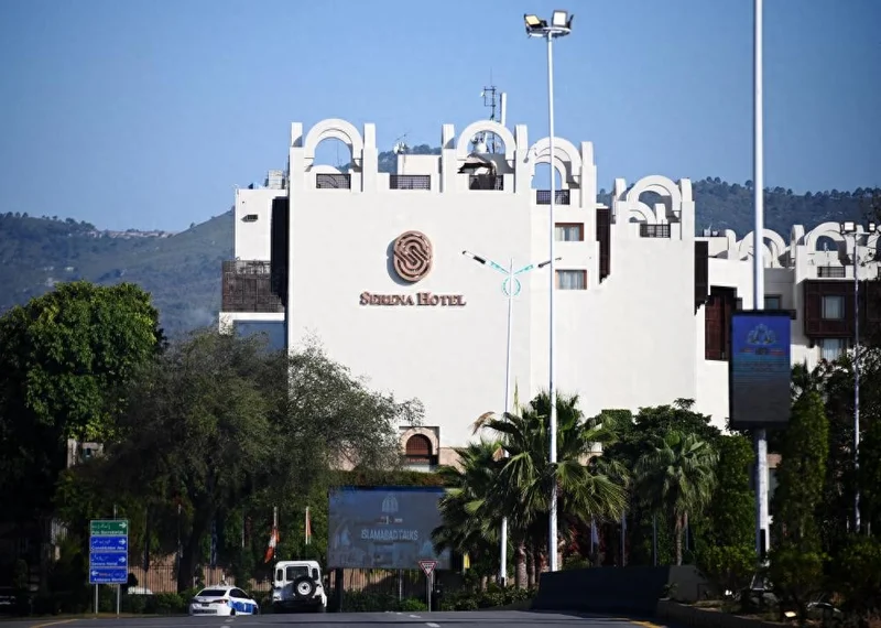 这是4月12日在巴基斯坦首都伊斯兰堡拍摄的谈判举行地点塞雷纳酒店外景。新华社发(王申 摄)