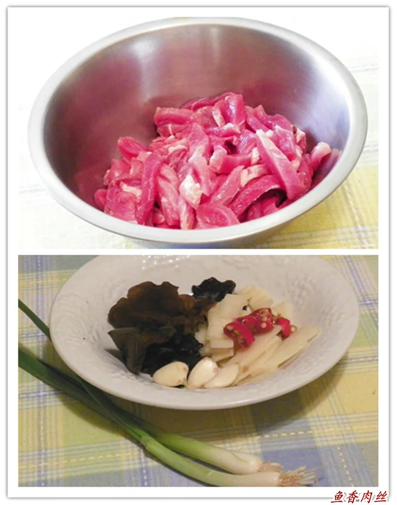 一、把猪肉顺纹切成丝状,放在较大的碗里,放盐、糖、料酒和胡椒粉抓腌至起胶,再放分两次放1汤匙水,抓至水被完全吸收在肉里,再放1汤匙的水淀粉(里面放3/4茶匙淀粉兑),抓至均匀,加1茶匙油,抓匀;