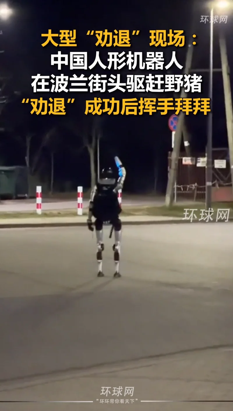 4月13日,波兰一个名为“爱德华”的网红机器人晚间在居民区驱赶野猪的画面曝光。