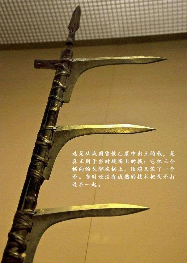 从上面只对“刺”和“砍”的描述不难看出,罗贯中认为戟就是大刀和长矛的结合,实在是大错。论“刺”戟不如长矛,论“砍”戟不如大刀。请看戟的构造: