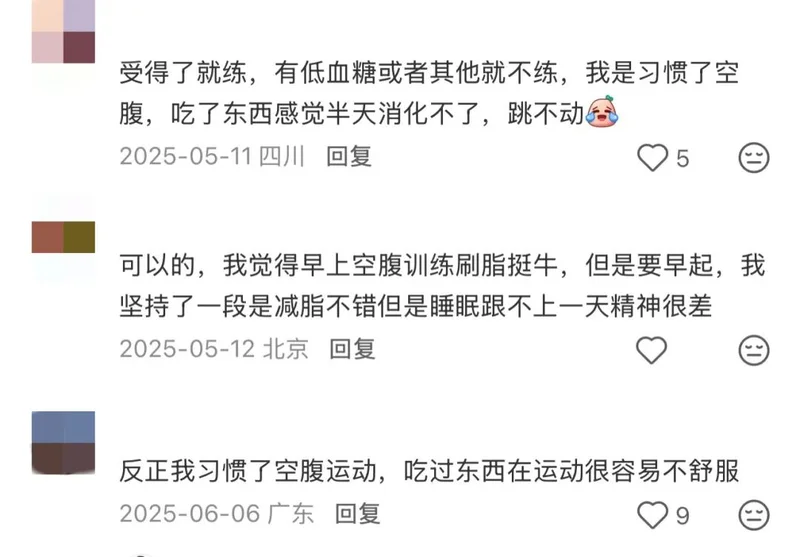 最近葡萄经常刷相关内容的评论区里,不少网友分享了自己空腹锻炼后的不良反应:低血糖、头晕、心慌,甚至有人练到一半差点晕倒……