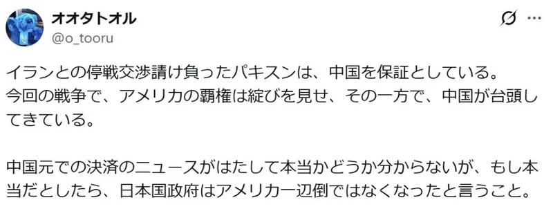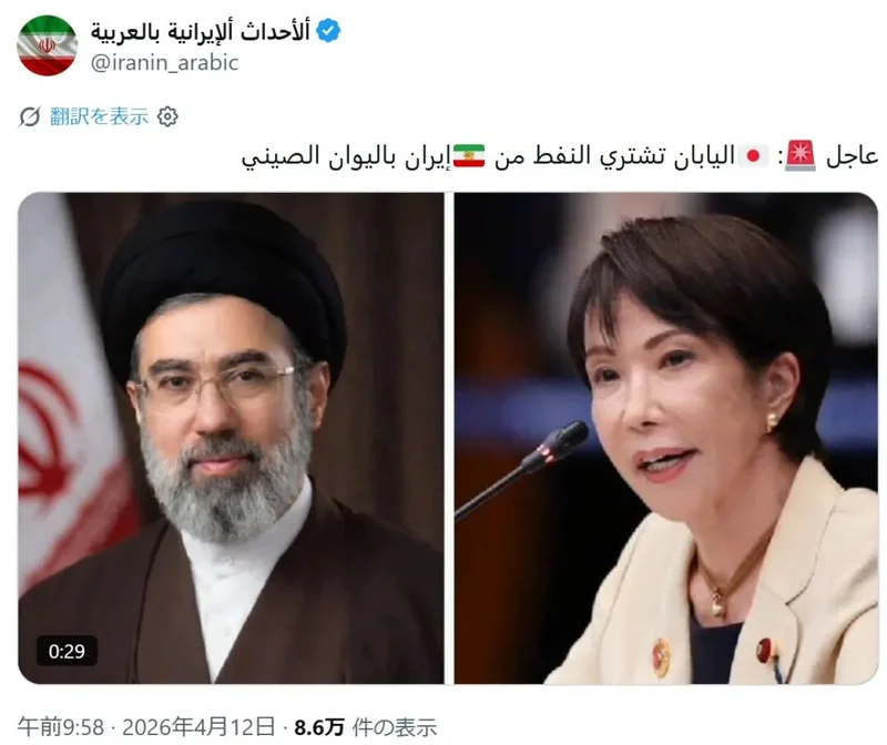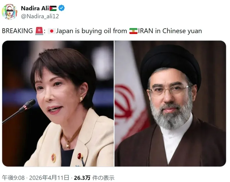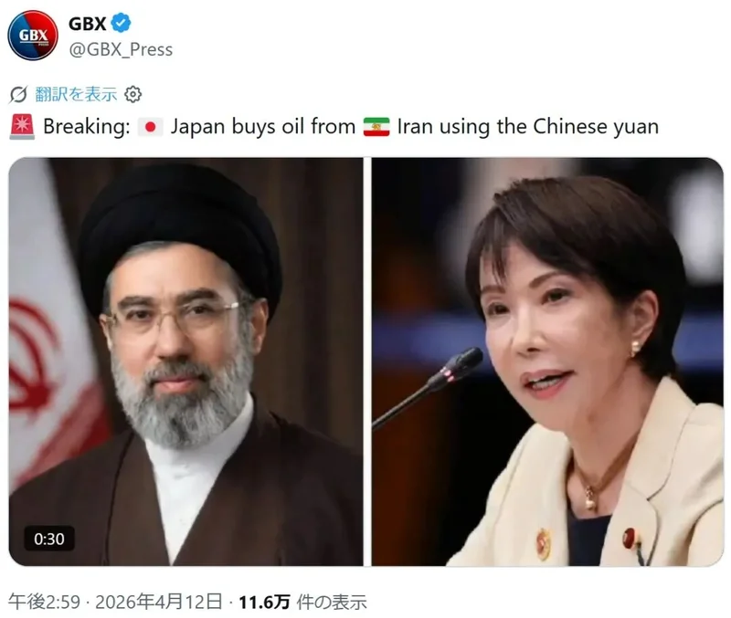 自4月12日早晨起,X突然疯传:日本政府已达成共识,使用yuan向伊朗购买石油,该石油可经霍尔木兹海峡。