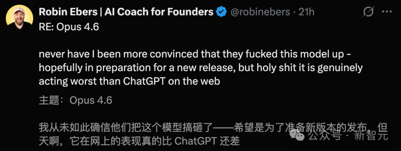 甚至,有人发现Opus 4.6连ChatGPT、Opus 4.5都不如。