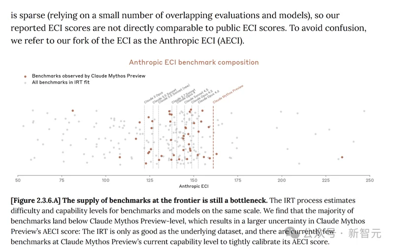 在系统卡中,Anthropic也承认:报告的Mythos等模型的ECI得分不确定性更大。