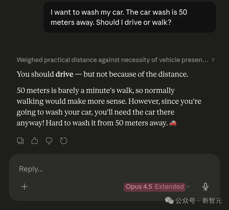 同样一道洗车难题,Opus 4.5竟打败了Opus 4.6。