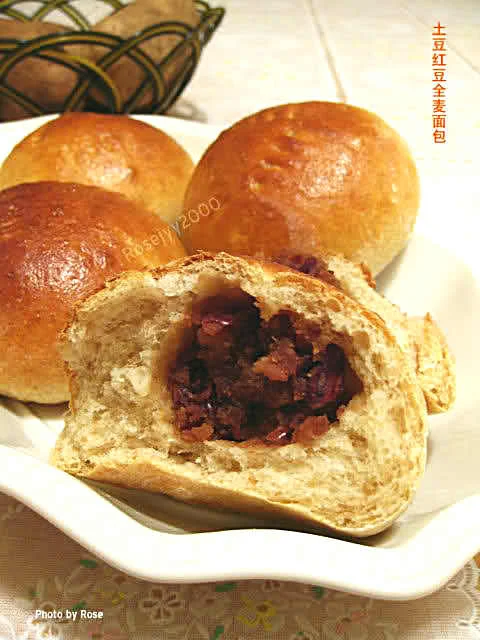 A 高筋面粉150g,全麦面粉50g,细砂糖10g,盐1/4 tsp(茶匙),即溶酵母4g(大半茶匙),地瓜泥50g,鲜奶130g,蛋黄1只