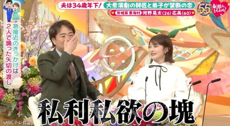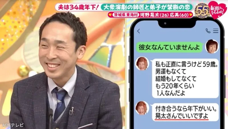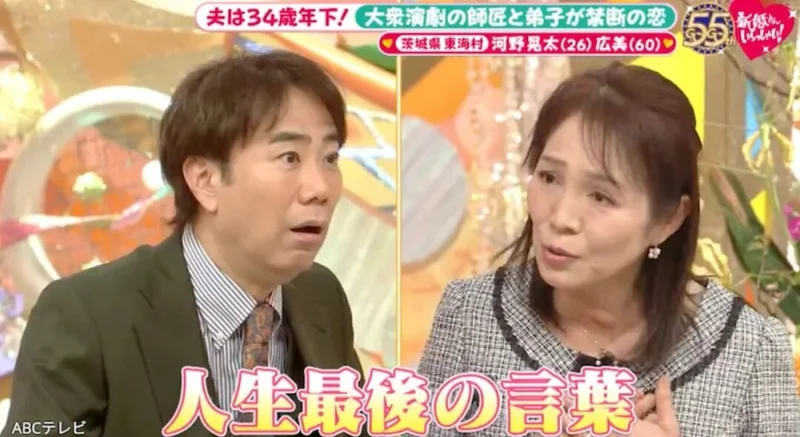 在日本,有一对夫妻最近登上综艺节目《新婚さんいらっしゃい!》,他们的故事让所有人都惊呆了——妻子60岁,丈夫26岁,两人整整差了34岁!而且最劲爆的是,他们的关系竟然是从"师父与弟子"开始的。