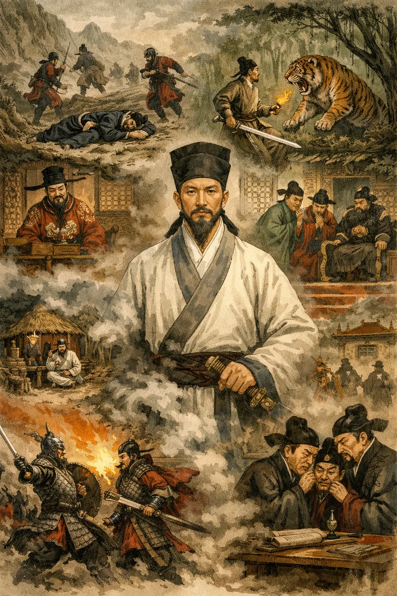 早年,他因不畏权势,得罪权奸刘瑾,被贬谪至贵州龙场。赴任途中,刘瑾派锦衣卫追杀,王阳明靠诈死才侥幸脱身。到了龙场,又面临猛兽袭击与密林瘴气的考验,直到刘瑾倒台,才得以回京复命。然而朝中依然权奸当道,即便他后来平定宁王叛乱,立下不世之功,依然处处受人掣肘,甚至有人欲置他于死地。