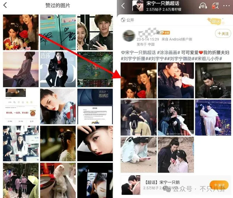 而且这个小号给宋祖儿刘宇宁的双人剧照点过赞 ↓