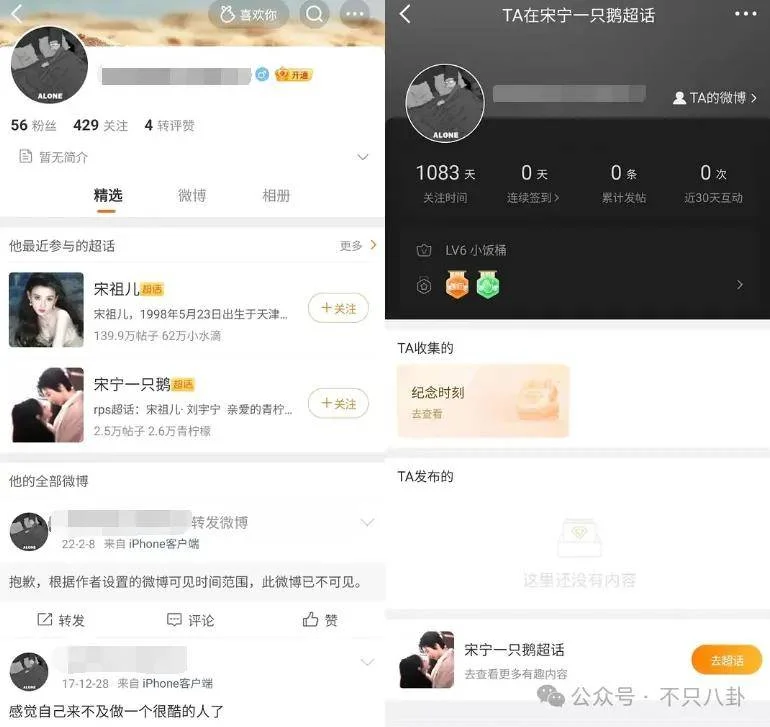 更让人没想到的是,这个小号竟然还关注了宋祖儿与刘宇宁的真人cp超话!