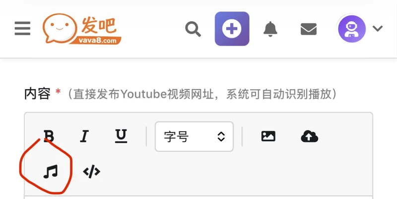 2 点击发帖页面中的🎵音符按钮,成功的话会跳出文件上传界面。