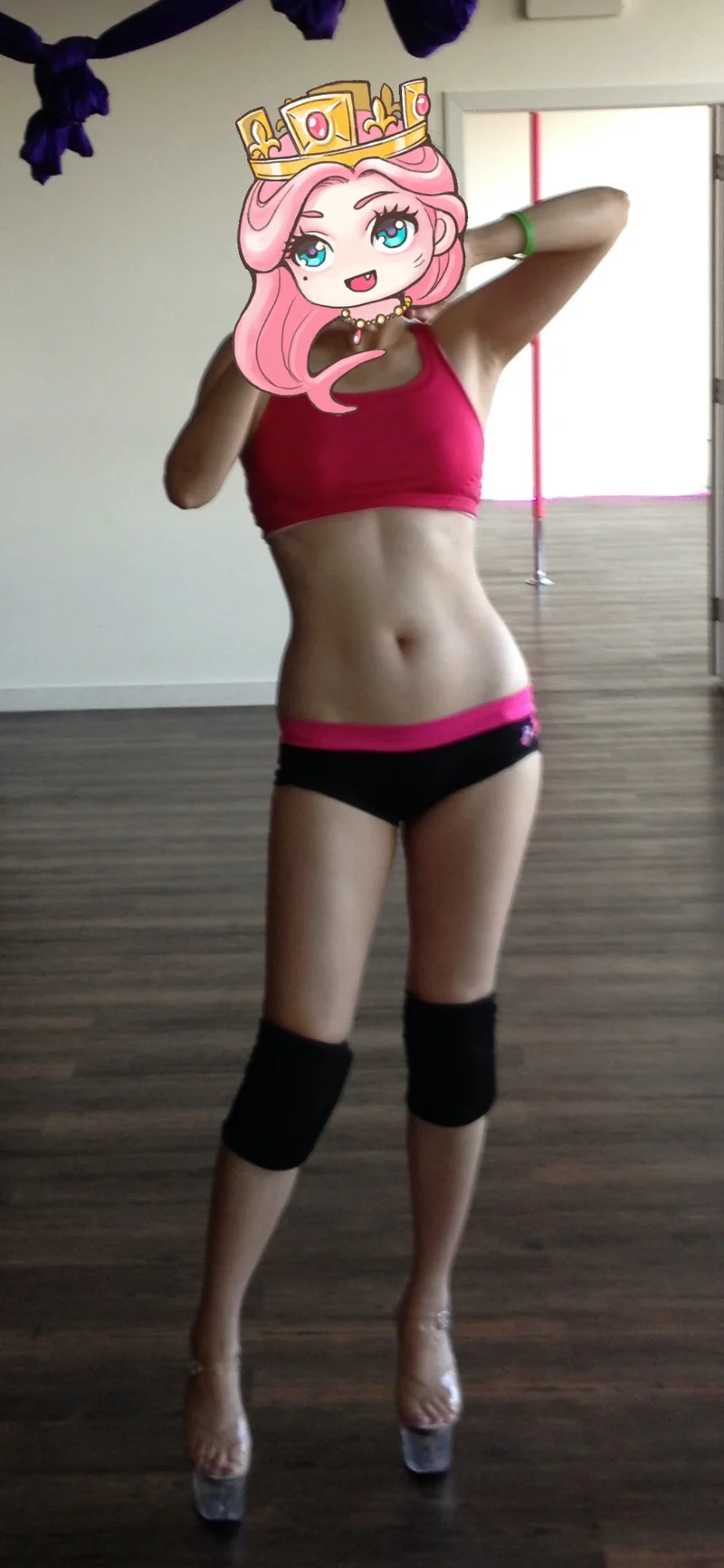 多跳了几次,就觉得第一次的想法太夸张搞笑了。大部分学员和我一样,很简单,都是以健身娱乐为主要目的。第一次课结束我当机立断买了一套装备,包括上下两件的钢管舞专用健身服和一双18cm高跟的标准舞鞋。披挂整齐之后,第二次上课就不自卑啦!原来我也不矮嘛,站在一排辣妹中间也不违和,吼吼吼。