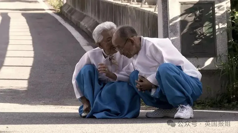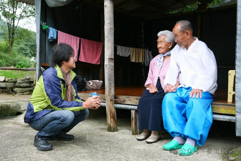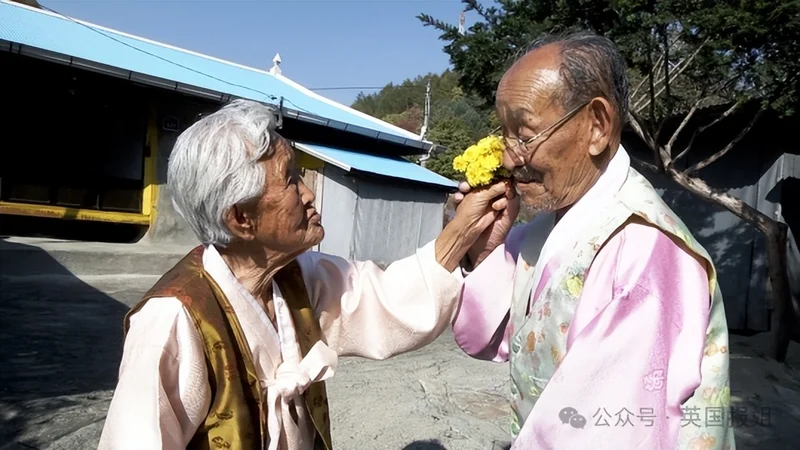 2012年,他在江原道的小村庄里,遇见了89岁的姜溪烈和98岁的赵炳万,老两口手牵手散步的模样,像极了初恋的少年少女,瞬间打动了他。