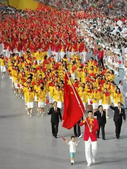 外篇闲话:从2004雅典奥运开始,中国代表团首次在开、闭幕式礼服上大面积应用红,黄两色的搭配。像极了“胸柿炒蛋”式的队服,透着那么股子熟悉又亲切的“咱家的味儿”。隔着屏幕,我都想撒一把翠绿的葱花上去,您说逗不逗?哈哈哈!