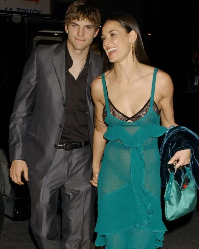 和墨菲分手后短短一年,库彻在一场晚宴上遇到了黛米·摩尔。2000年代最抓马、狗血的姐弟恋,正式上演。