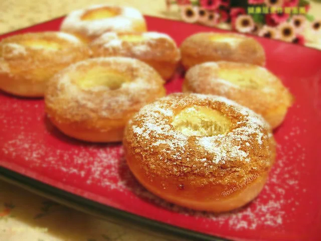 做过君之的罗宋甜面包,面包表面刷上黄油,撒上糖粉,那感觉那味道真是妙不可言,也许是表面有点象甜面圈的感觉吧,好想试一试免炸甜面圈,刚好也可以利用上Savarin的模子,就参照孟老师的甜面圈方子,做个实验,成功不成功,看过成品就知道了。