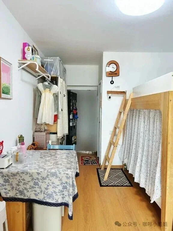 我没办法说这个安排多完美,因为它确实是被逼出来的。但我想说的是,这家人没有因为空间小就放弃「让家有点样子」这件事。那个摆钟,那块碎花桌布,都是有人在用心经营这个地方的证据。