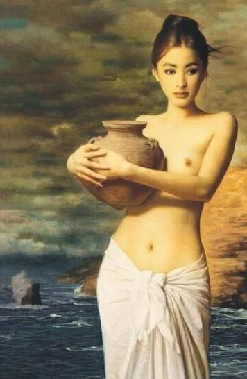 当年在国内的时候,发现很多场合都挂着同一幅画的复制品《抱陶女》。画中这位怀抱着陶罐的少女,几乎打动了每一位看画的人。后来,我才知道这幅画的名字叫《陶》,是画家谢楚余作品。原作中,少女本来是上半身赤裸,下半身裹着白裙,后来在审查版中不得不加上了白色裹纱抹胸。据说画中的模特,实际上是由三个人合成的,其中有一位还是混血儿,所以抱陶女有一种中西合璧的美。这幅画据说是被盗版次数最多的中国油画作品,被盗版超过千万次。真正的原作已被私人收藏。