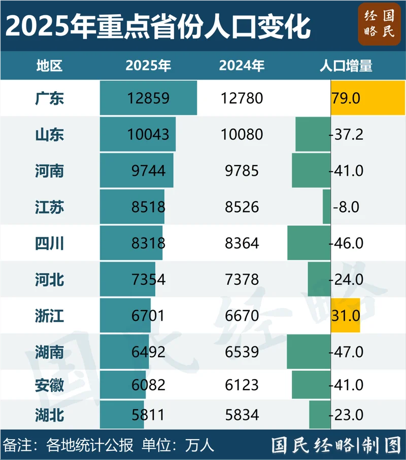 在刚过去的2025年,四川常住人口为8318万,相比上年减少46万人,减少量仅次于湖南。