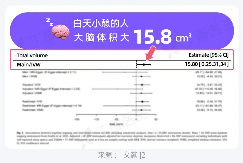 一项涵盖了近 38 万人的大规模研究发现,习惯白天小睡的人,大脑萎缩得更慢,整个大脑的体积更大,大概多出来 15.8 立方厘米。[2]