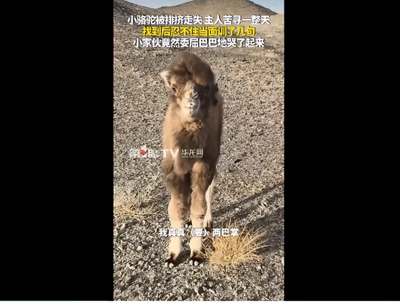 4月16日(采访时间),内蒙古。小骆驼被排挤走失,主人苦寻一整天,找到后忍不住当面训了几句,小家伙竟然委屈巴巴地哭了起来。