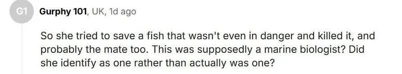“所以说,她试图去救一只根本没有身处险境的海洋动物,结果把它弄死了,可能连它的同伴也一起害死了。这人据说是个海洋生物学家吗?她只是自称生物学家,还是真的有这个头衔?”
