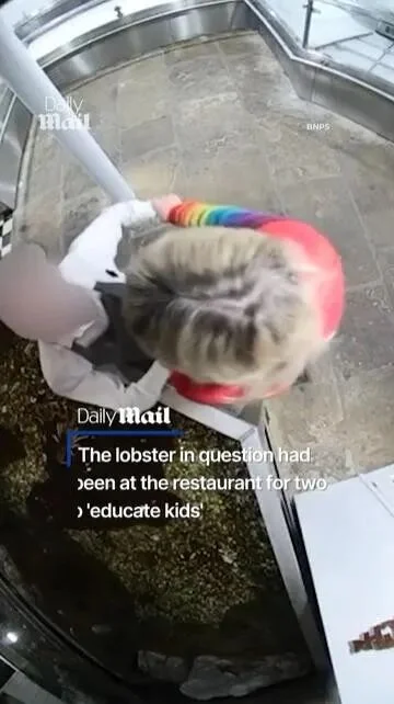 但斯马特也没放弃,她一只手推开服务生,一只手猛地伸进水族箱,捞起一只龙虾,然后抓着它就跑出了餐厅。