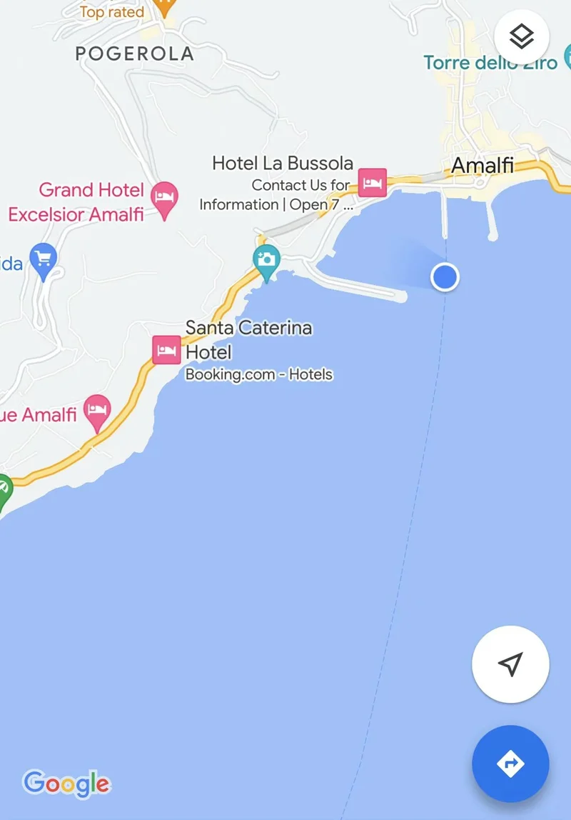 让人心醉的地中海水载着我们去 Amalfi。