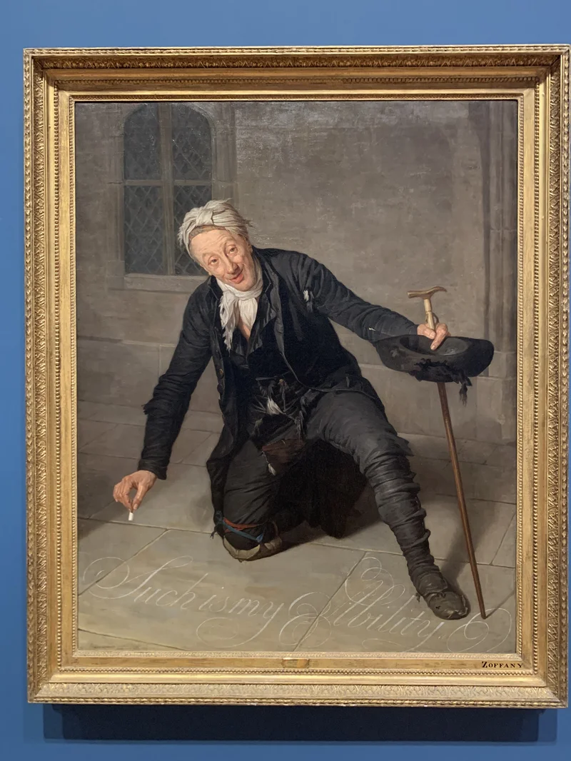 这幅画的创作时间是1795年,大概是在现实主义艺术拉开序幕的时代吧。虽然不算是现实主义名作,这幅画的题材已经脱离了此前关于宗教、神话、英雄之类的叙事传统,转向平民、市井、以及被边缘化的群体。画家是法国人,名叫 Ferreol Bonnemaison,不算大家,法国大革命后逃到英国。网上他的信息并不多,连GPT 也说不出多少内容。维基百科上有短短一页的介绍,说他是画家,画商,也修复古画;其中摘引了一小段文献,说他修复古画的时候工艺粗暴,“令人惊愕”。