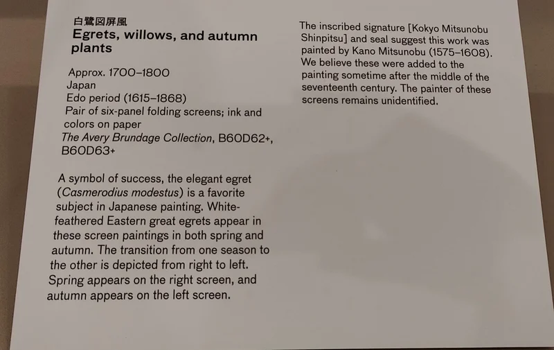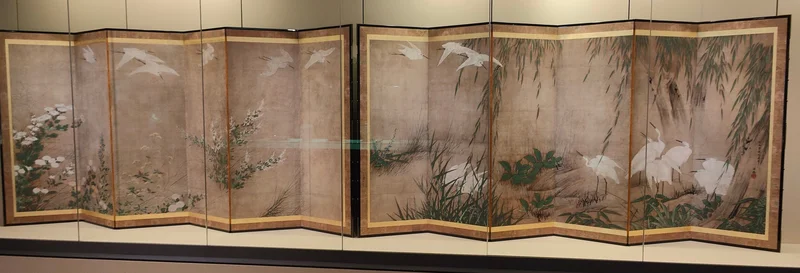 优雅的白鹭是日本画喜见的主题,象征成功。画面从右至左展示了由春到秋的季节变化。