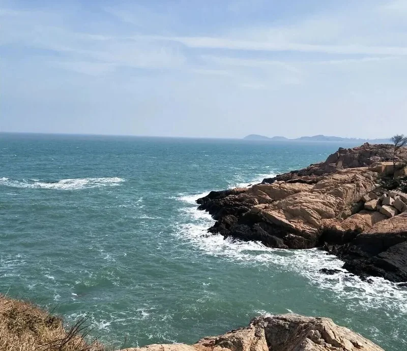 北侧礁石滩, 退潮可捡贝壳、抓小螃蟹, 西侧还有废弃的民国灯塔, 拍照出片。