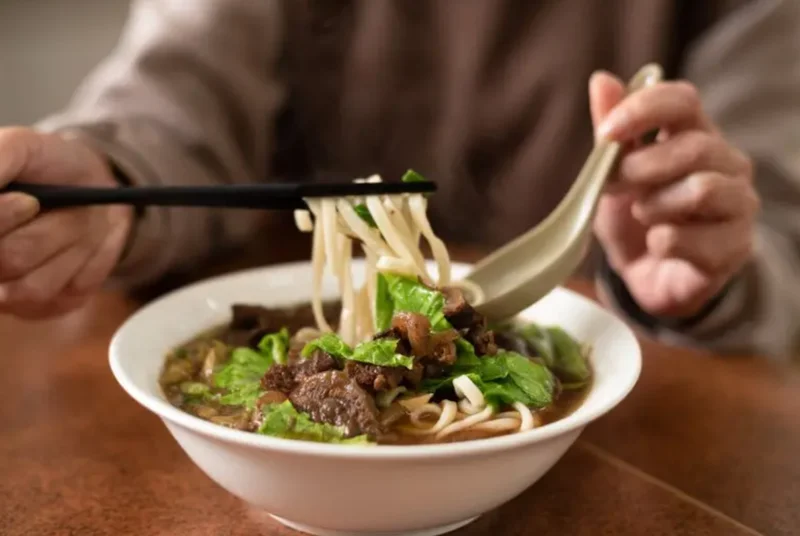 台湾牛肉面被誉为「牛肉面大王」,面条吸附汤汁的油脂与香气,吃起来风味浓郁,但也容易摄取过量的钠。肾脏科医生指出,牛肉面、大肠面线、烫青菜是伤肾地雷,重咸、重口味易加重身体负担。除了高钠,热量也高达800大卡以上,油脂量相当可观。