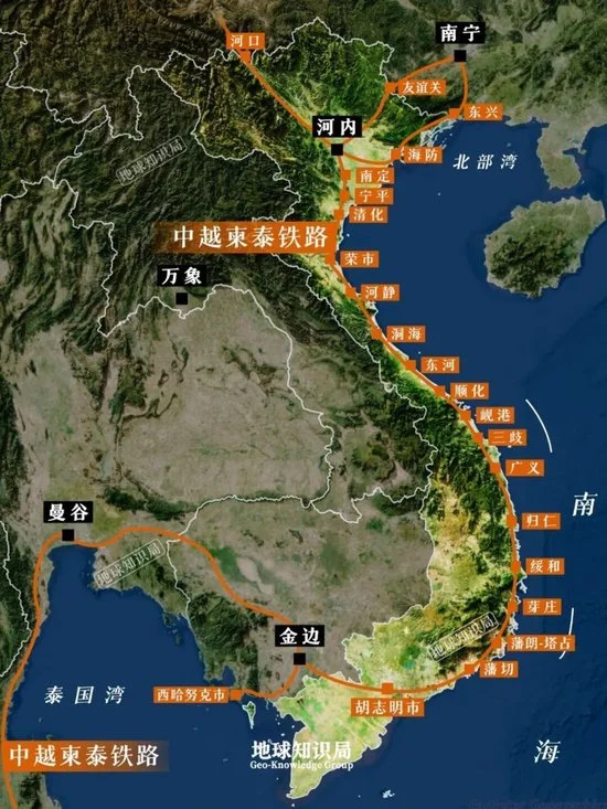 之所以强调“标准铁轨”,是因为中越之间已有铁路联通,从云南到广西,都不乏直抵越南的通道。