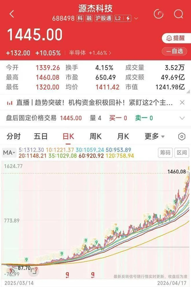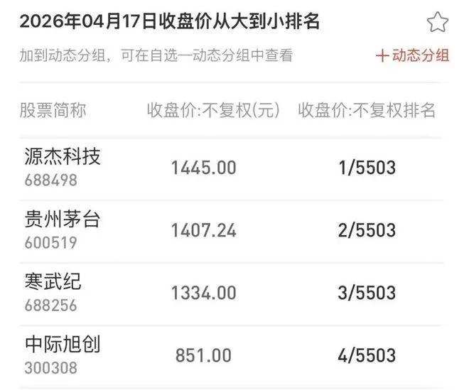 周五,源杰科技股价1445元,超过 茅台。