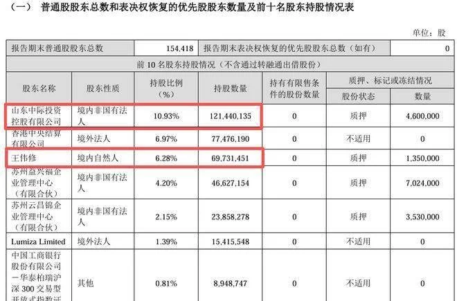 截至今年一季度末,王伟修及其一致行动人合计持有公司17.21%股份,1.91亿股。