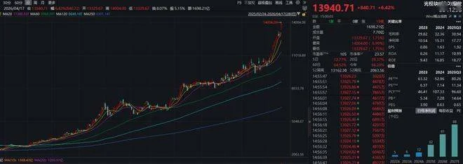 从一年前87元/股,如今已经涨到了1445元/股,一年涨幅高达1560%。
