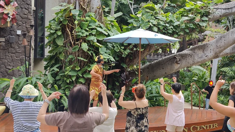 皇家夏威夷前面夏威夷花奶奶在免费传授夏威夷舞: