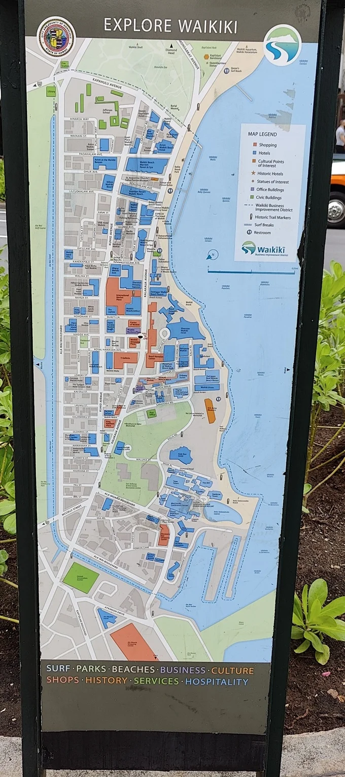上午旅游大巴下来步行,曾问路一位夏威夷阿庆嫂:“去Waikiki beach怎么走?”