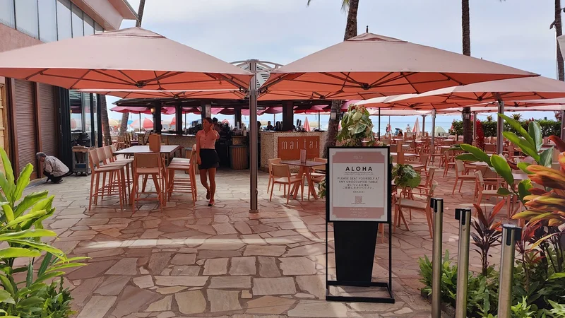 美眉:“没问题。阿立兄再往前走,长廊尽头有一家Mai Tai酒吧。从酒吧可以走到海滩上去。”
