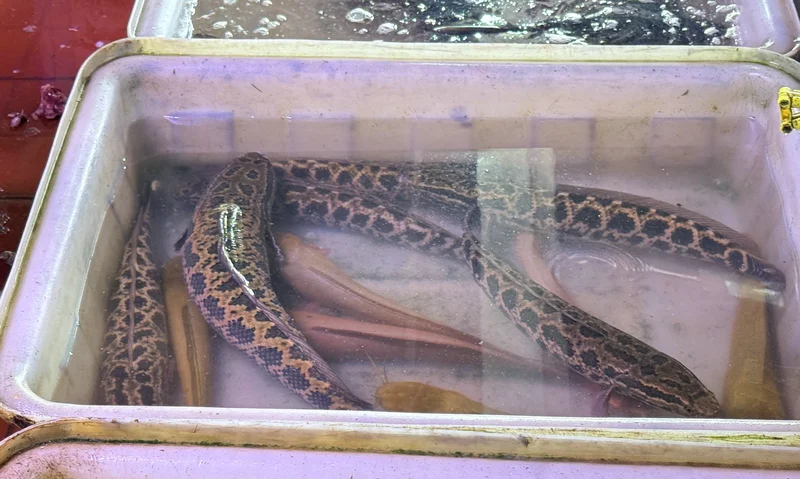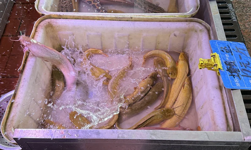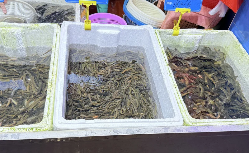 还有卖无麟鱼,如塘蚤、泥鳅、鳝鱼等。