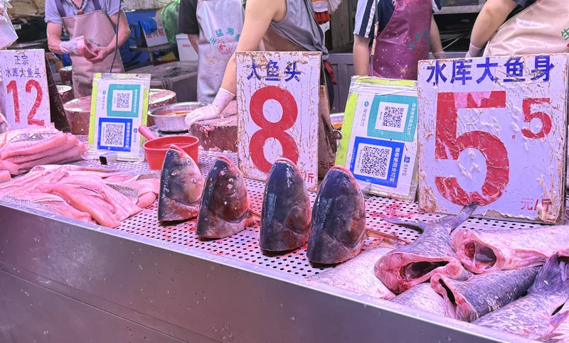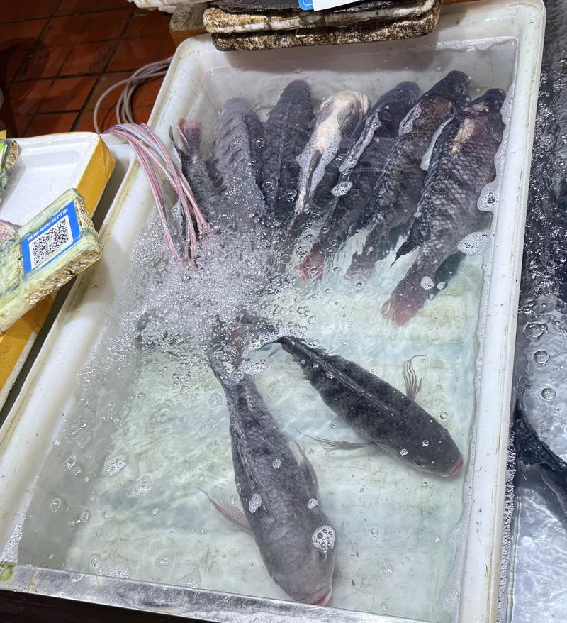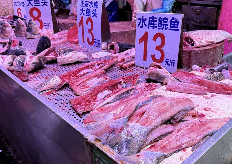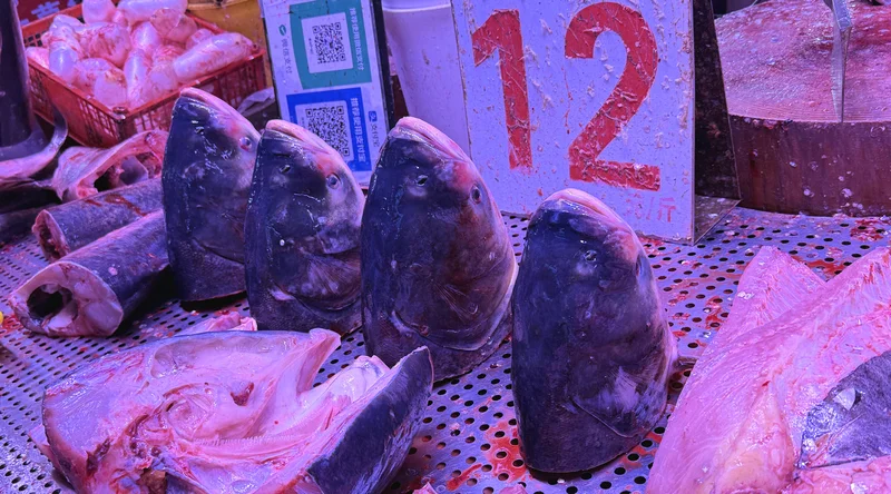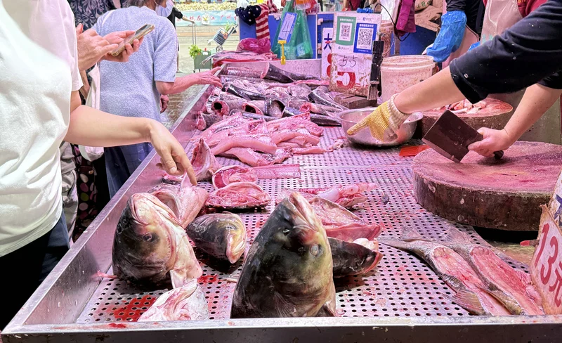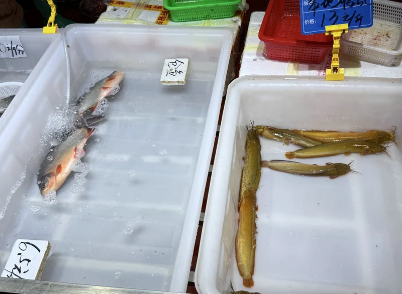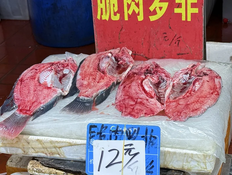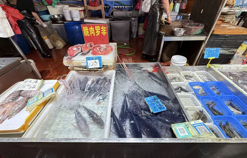 好几个档口,卖罗非鱼、大鱼、鲮鱼、鲩鱼等有麟鱼。