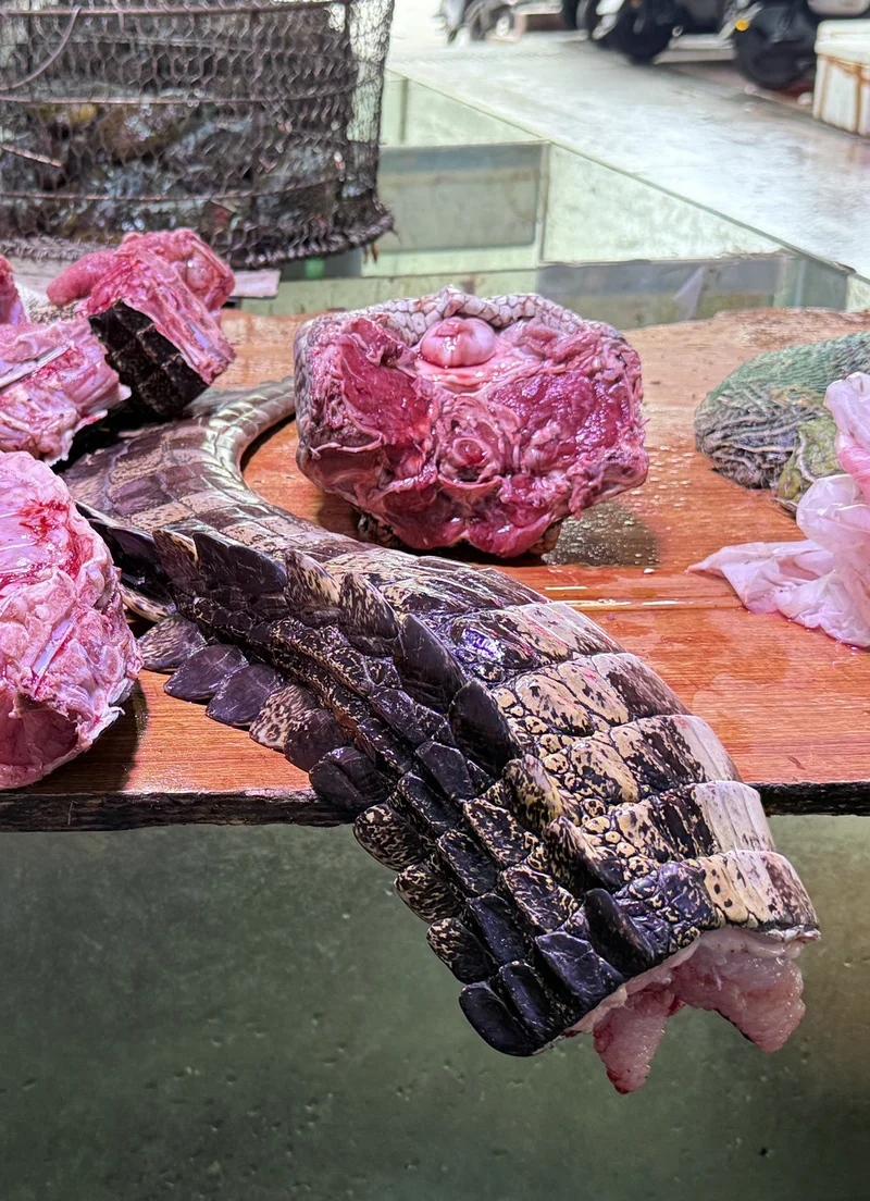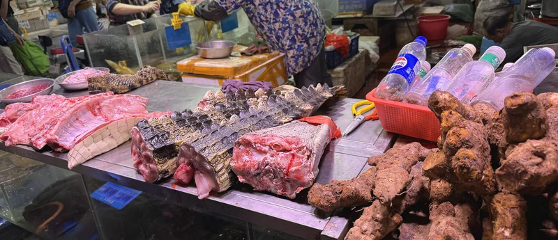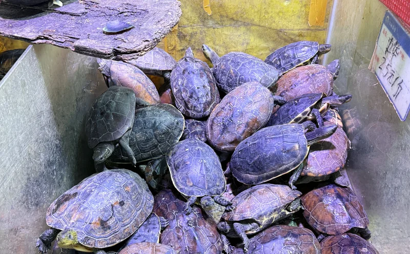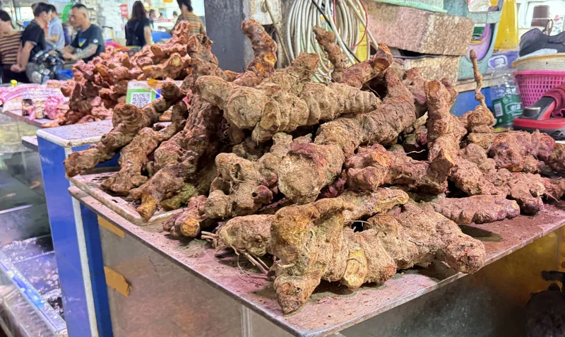 乌龟、水鱼,为了方便顾客为水鱼配汤料,旁边还供应新鲜土茯苓。