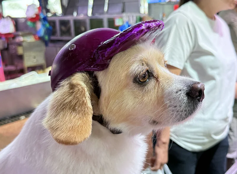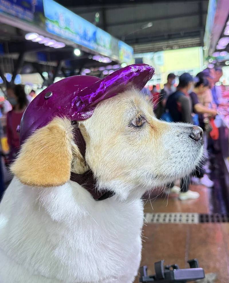 这汪不是卖的哟,好乖,在等主人称海鲜,一动不动,太可爱了。