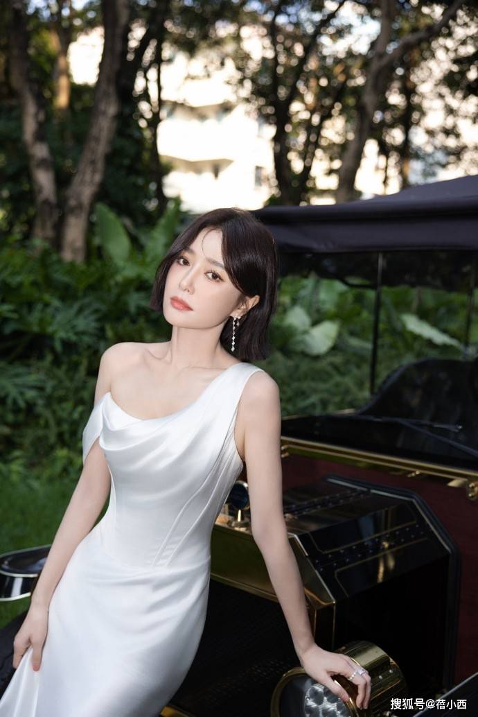 上半身露出一侧肩颈,为了避免单调,秦岚搭配了长款的耳饰,修饰了脸型,还衬得气质清冷又温婉,再加上秦岚留着一头利落的一刀切短发,看起来特别的利落有气场,尽显成熟女性的优雅韵味。