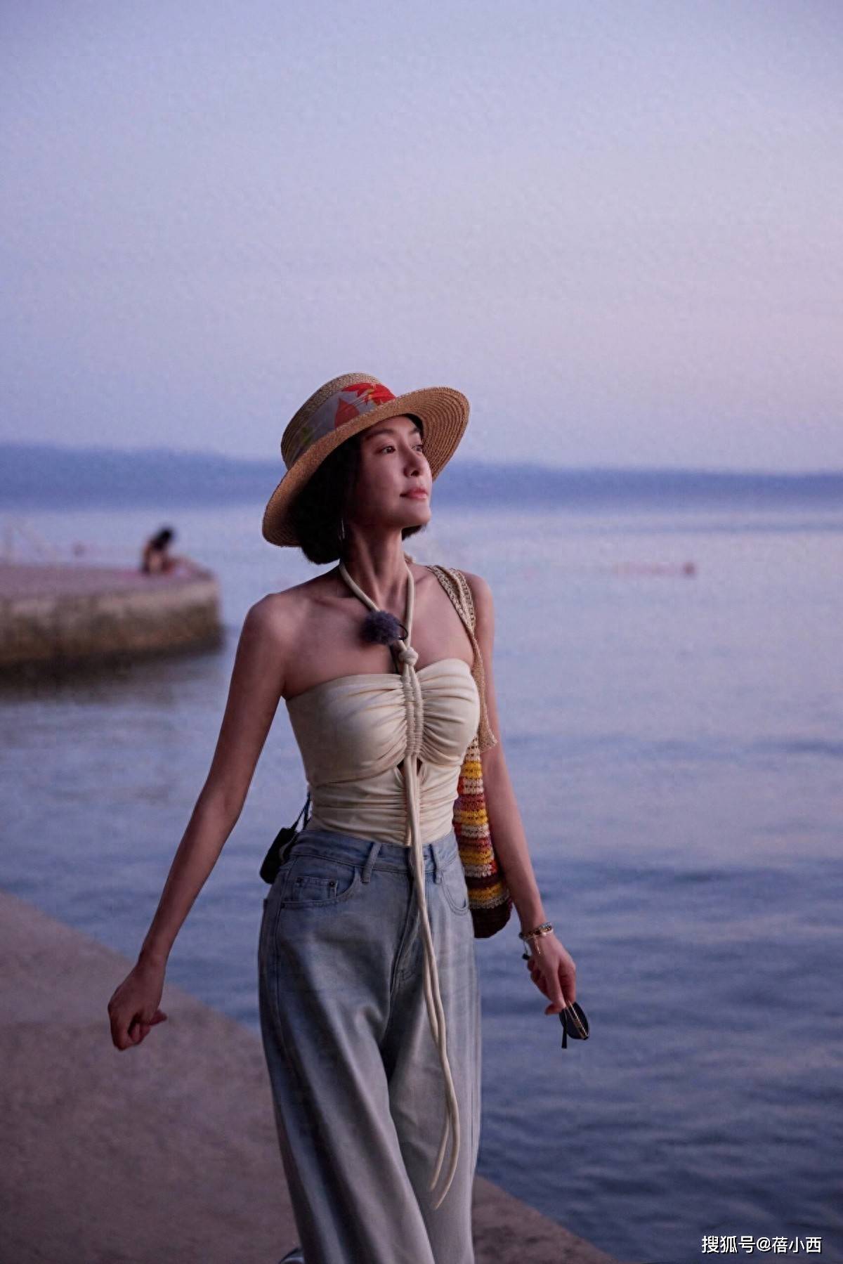 其实中年女性的穿搭不用追求复杂或暴露,像秦岚作为中年女性的搭配标杆,在海边用基础款的抹胸上衣搭配牛仔阔腿裤,就能穿出丰满的身材,凸显清爽又舒展的状态。完全没有中年发福的疲惫感,反而把 “又美又瘦” 的氛围感焊在了身上,让人忍不住感慨:自律的女人,真的自带光芒!
