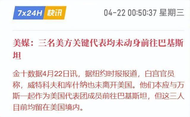 虽然巴基斯坦方面表示,美国的谈判代表正在陆陆续续的到达巴基斯坦,但是本次美国谈判代表团的关键成员,依然没有到达伊斯兰堡。