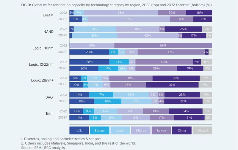 而拥有DUV,中国就能保证了绝大多数领域的芯片应用场景不被波及。根据美国半导体行业协会(SIA)的数据,中国大陆地区在28nm及以上成熟芯片的全球产能占比已经达到33%。