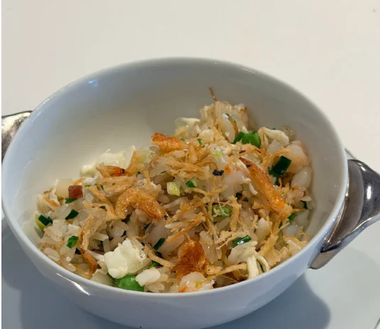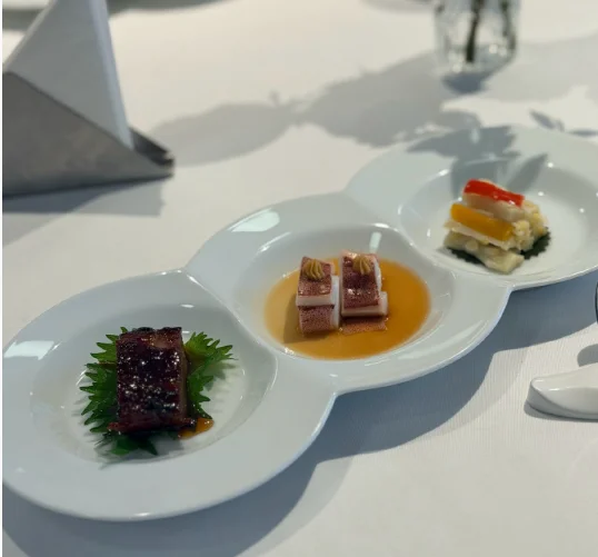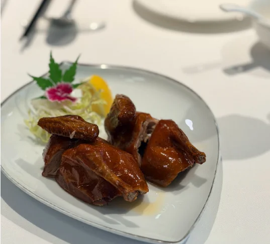 叉烧、鱿鱼、炖汤、老虎斑、乳鸽、蟹肉时蔬、海鲜炒饭、鲍鱼酥、核桃露。