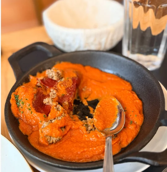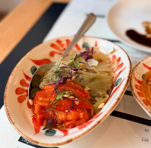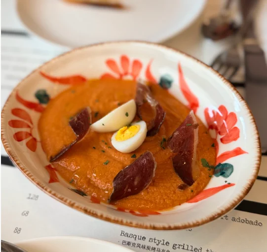 番茄浓汤、甜椒包肉、加泰罗尼亚烤蔬菜非常好吃,在全上海的西班牙菜里绝对是中上水准。然后海盐烤辣椒非常辣,谨慎尝试....